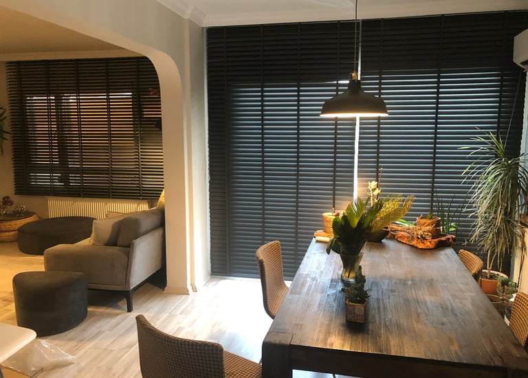 Geniş cam yüzeyler ve ofis alanları için ideal olan dikey perdeler, fonksiyonel yapısıyla ferah ve düzenli bir atmosfer sunar.